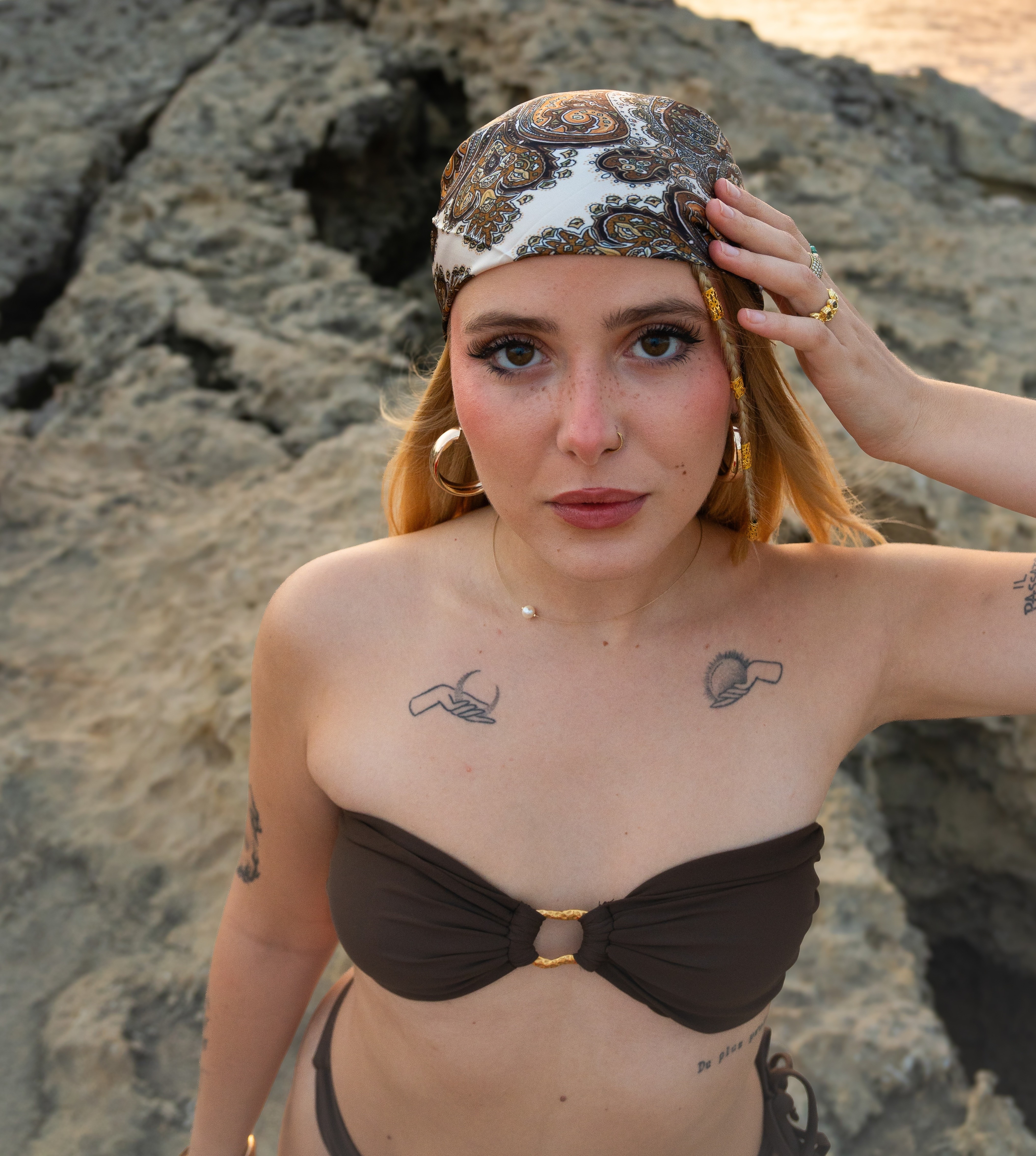 Les bijoux qui subliment nos créations sont réalisés en acier inoxydable, conçus de manière éthique et résistants à l'eau, au sel et au temps.